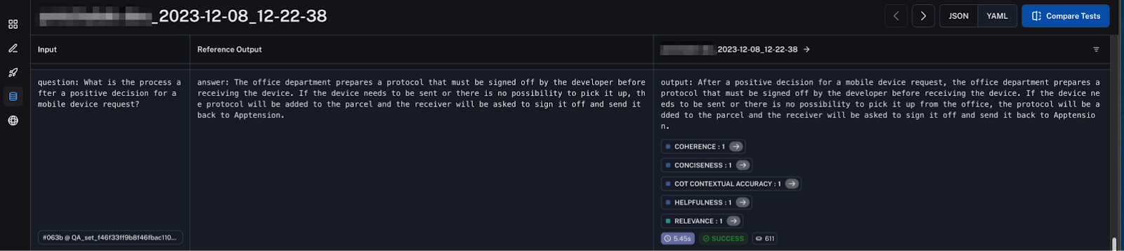 Even without an answer revision mechanism in our case, the silver set still proved valuable for steering solution development. It also served as a compass when improving evaluation results based on specific data points of the golden set.