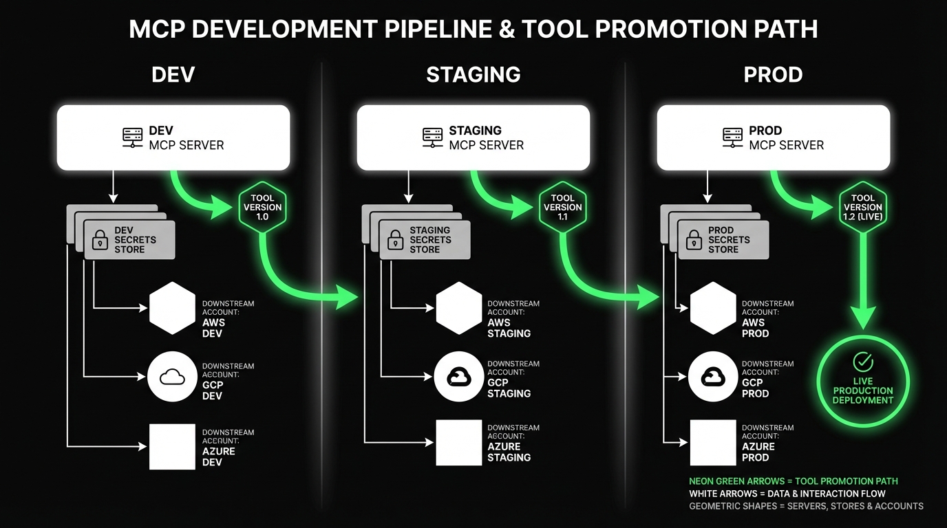 - Tool scopes: allow lists per tool, per environment