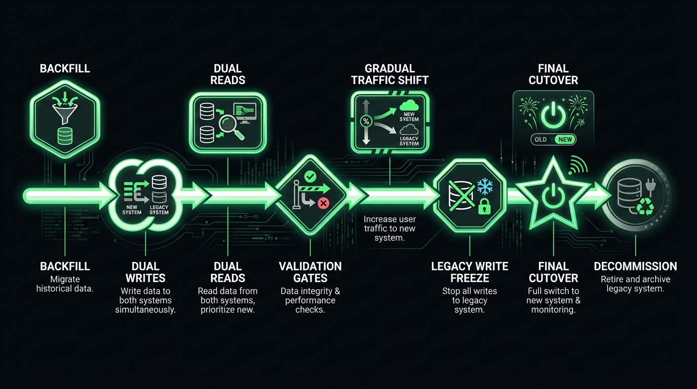 Insight: The strangler fig approach fails when teams skip step 5. Keeping both paths forever is not safety. It is permanent complexity.