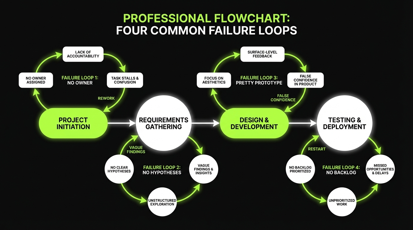 Most teams waste time because they start discovery without scope clarity, without a decision owner, and without a plan to turn findings into a build ready backlog.