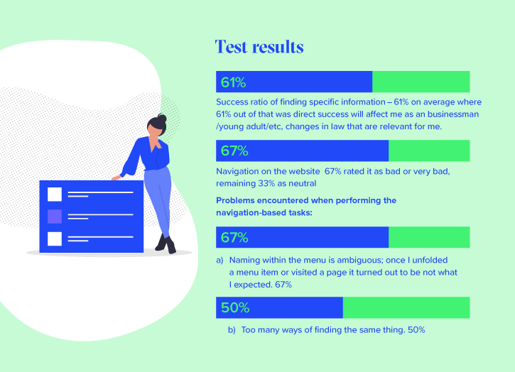 We are not just saying that we have proof – when inquired about why they would visit the parliament website, 83% (!) users shared the same general goal – they all said they would typically visit the website to look up new bills and changes in law that are relevant to them. Yet, for some reason, this piece of content is not prioritized on the website. Such a major structural flaw can be easily avoided with user research.