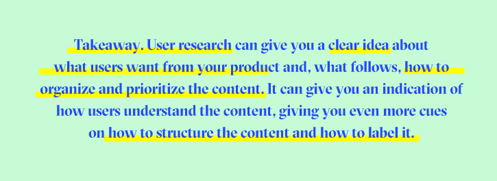 Actually, these could be brought down to one – if you want your product to make sense to and meet the needs of users, involve users in the process of creating IA. We know that it sounds like an absolute UX cliche, yet, somehow it is often overlooked by the product teams – when in a hurry to launch the product, teams cut down on user research, wasting even more resources in the long run.