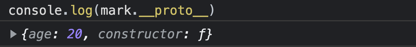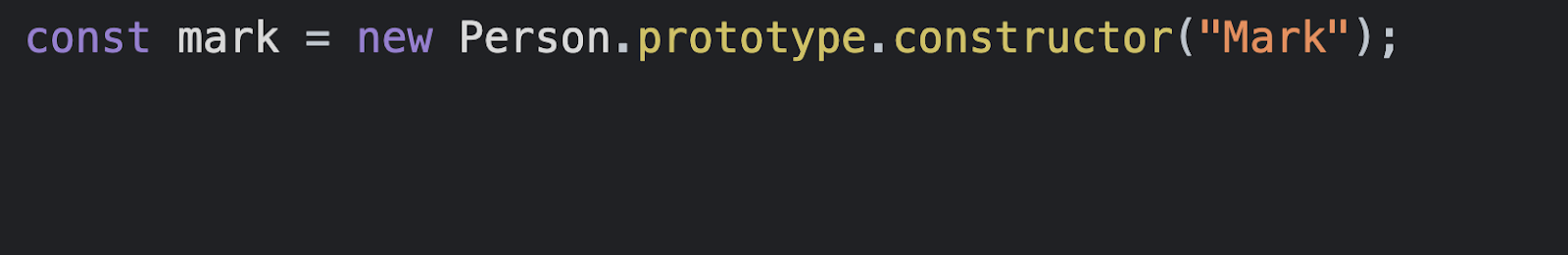 Then, we can refer to the constructor using the prototype property built into each class. This way, we can generate a new object of the Person class with the name property Mark.