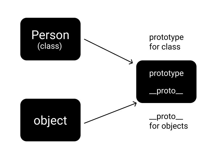 We can see that __proto__ and the prototype of the class both contain the Person class constructor. That's because __proto__ and prototype are actually the same thing but are named differently depending where you access them from - on a class or an object level.